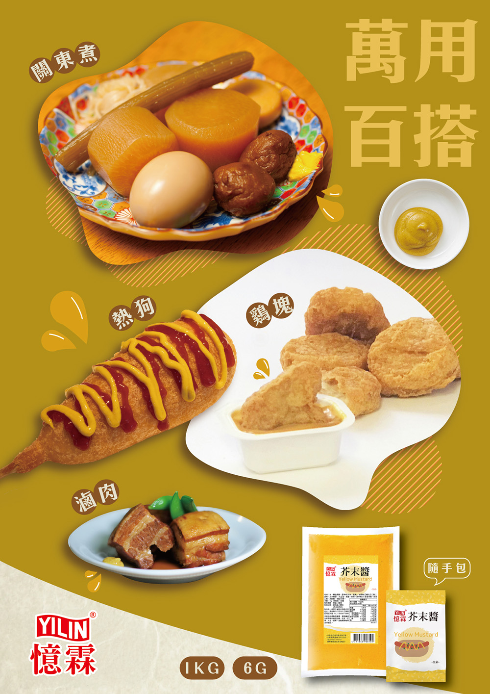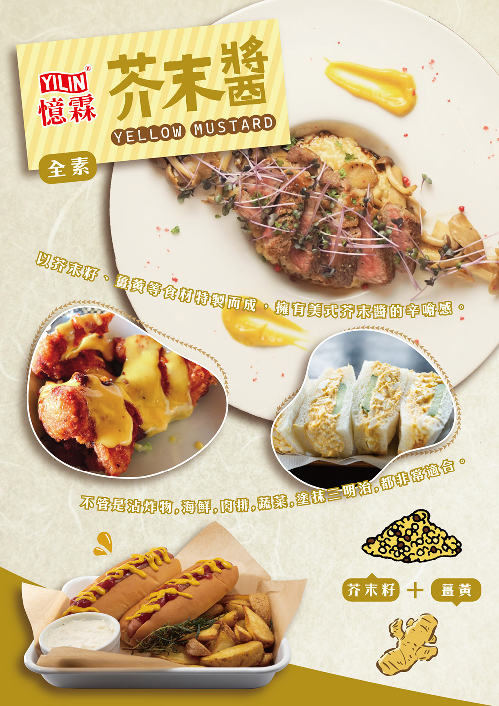 喜愛美式黃芥末醬者,可廣泛用於冷盤、海鮮料理,為料理提升不同風味。