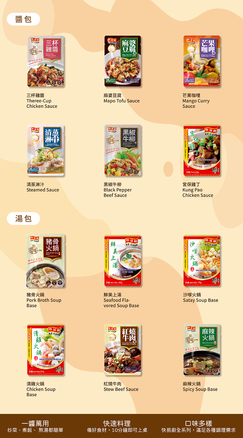 Pork Broth Soup Base 挑剔美食家、最愛家常菜料理、享受在家煮飯的時刻。 如果你具備以上這些身分,快易廚滿足你對美味料理的堅持。 白色濃郁的豚骨湯汁,煮湯、煮粥的基底湯底,輕鬆省去熬煮的時間與精力 50G上湯以1500c.c.的水稀釋煮開即可 GTIN:4711363909690